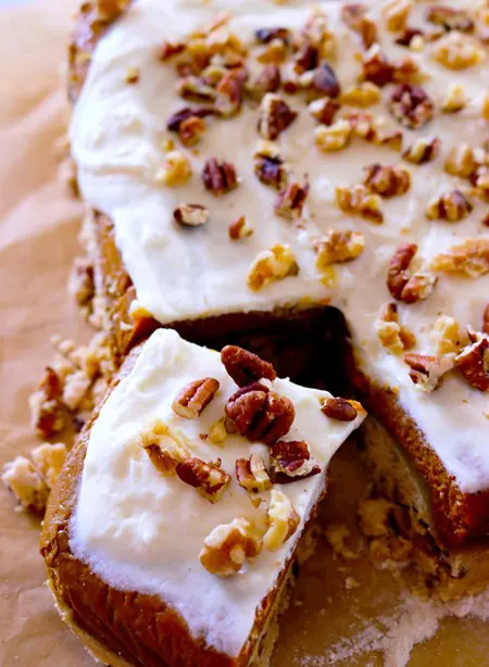 Spiced pumpkin, gooey cake, crunchy caramelized nuts – now these are layers we can get behind!